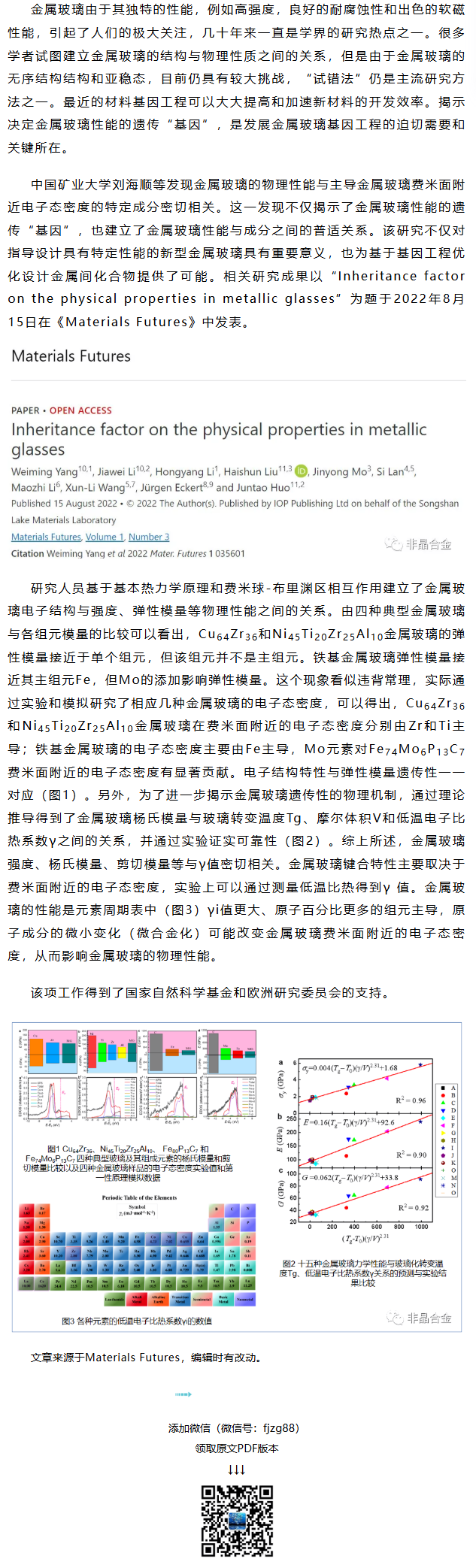 《Materials Futures》刘海顺等工作:金属玻璃性能的遗传“基因”