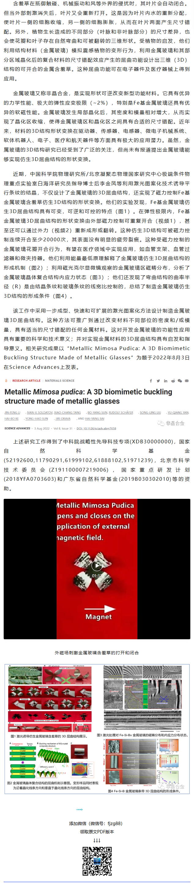 金属含羞草:金属玻璃仿生3D屈曲结构