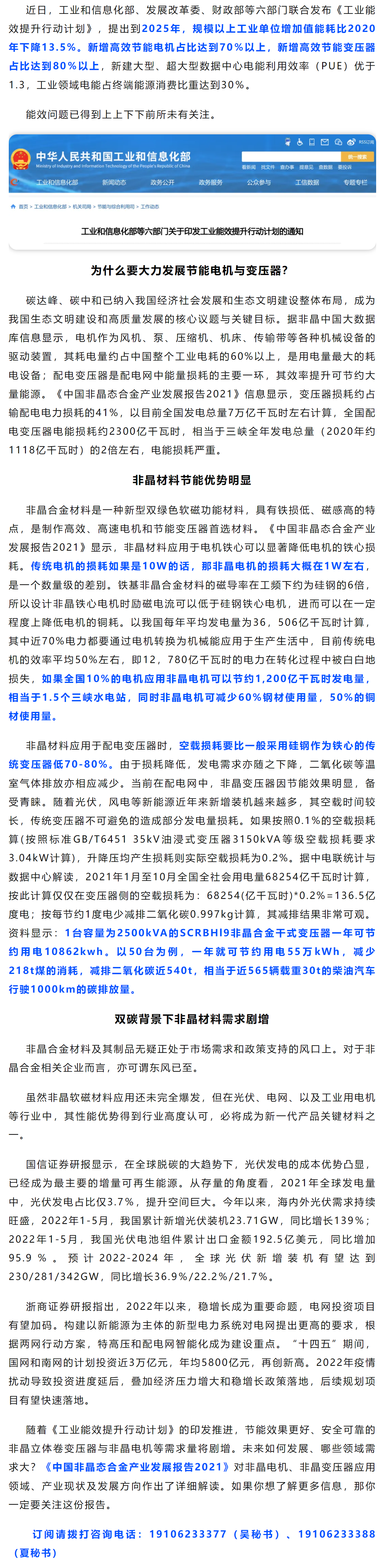 工业领域能效提升“施工图”发布,寻材问料看非晶