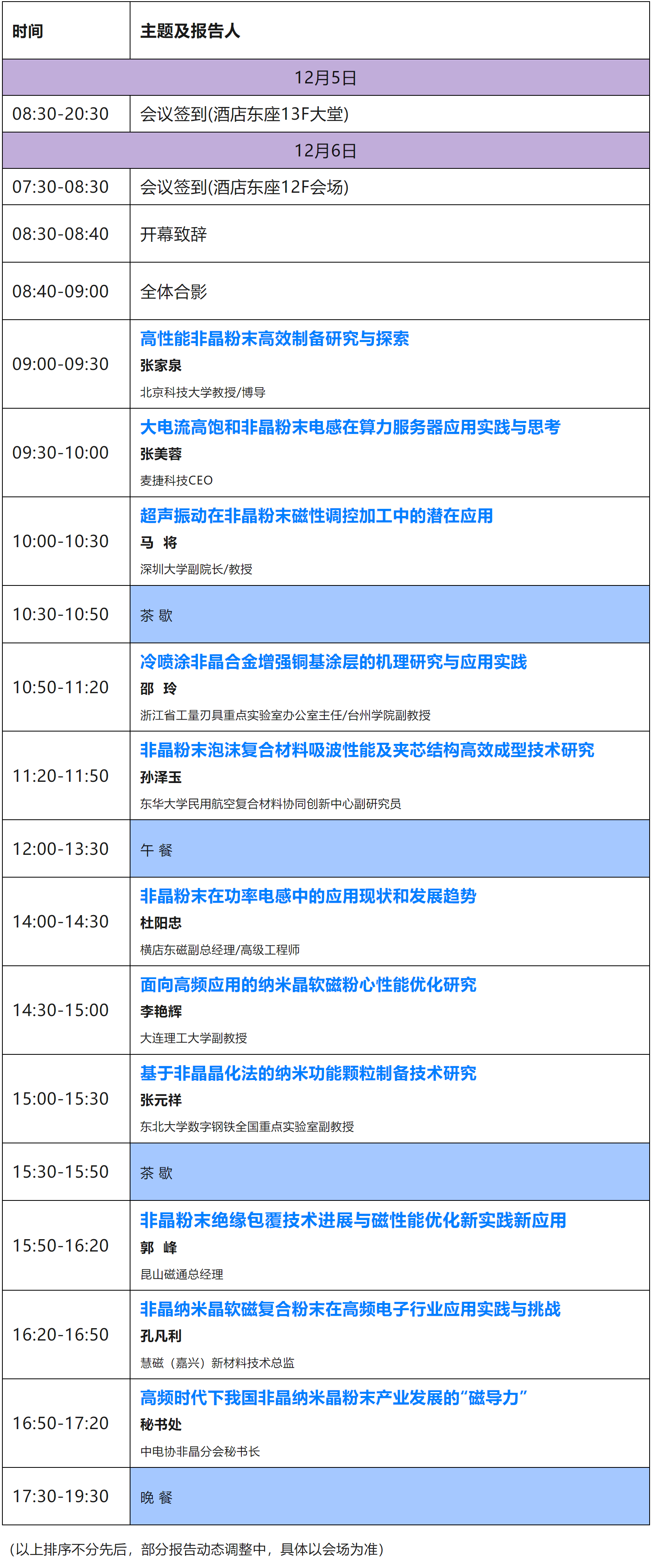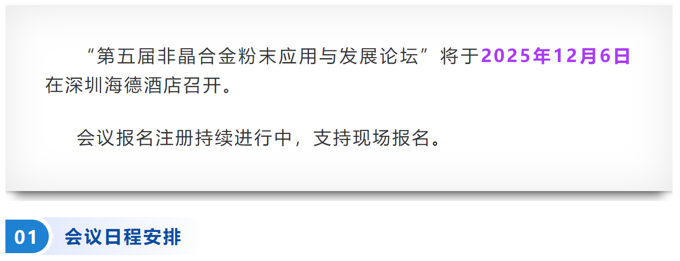 会议日程公布|第五届非晶合金粉末应用与发展论坛