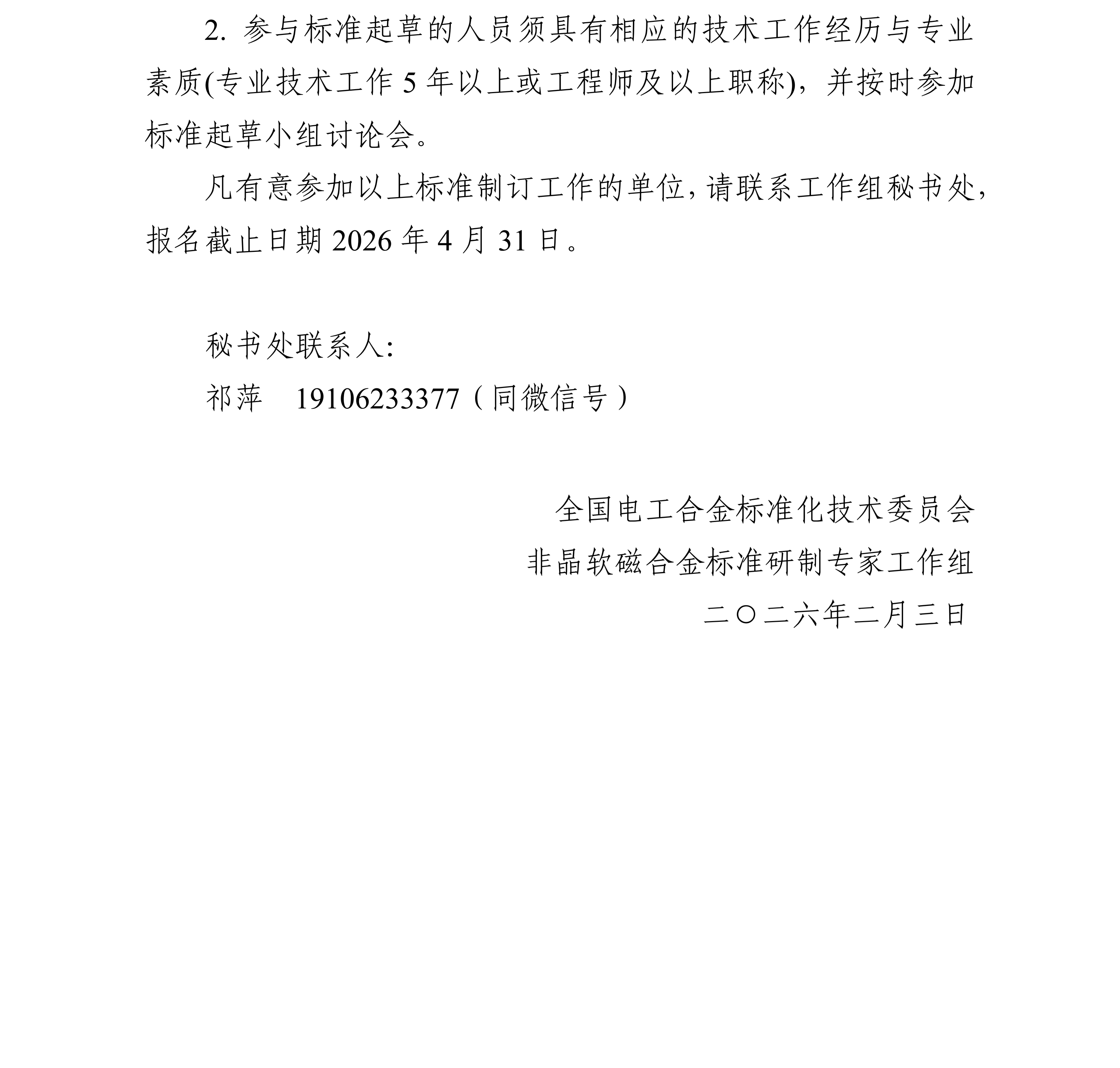 关于征集《半工艺铁基非晶带材》国家标准起草单位的通知
